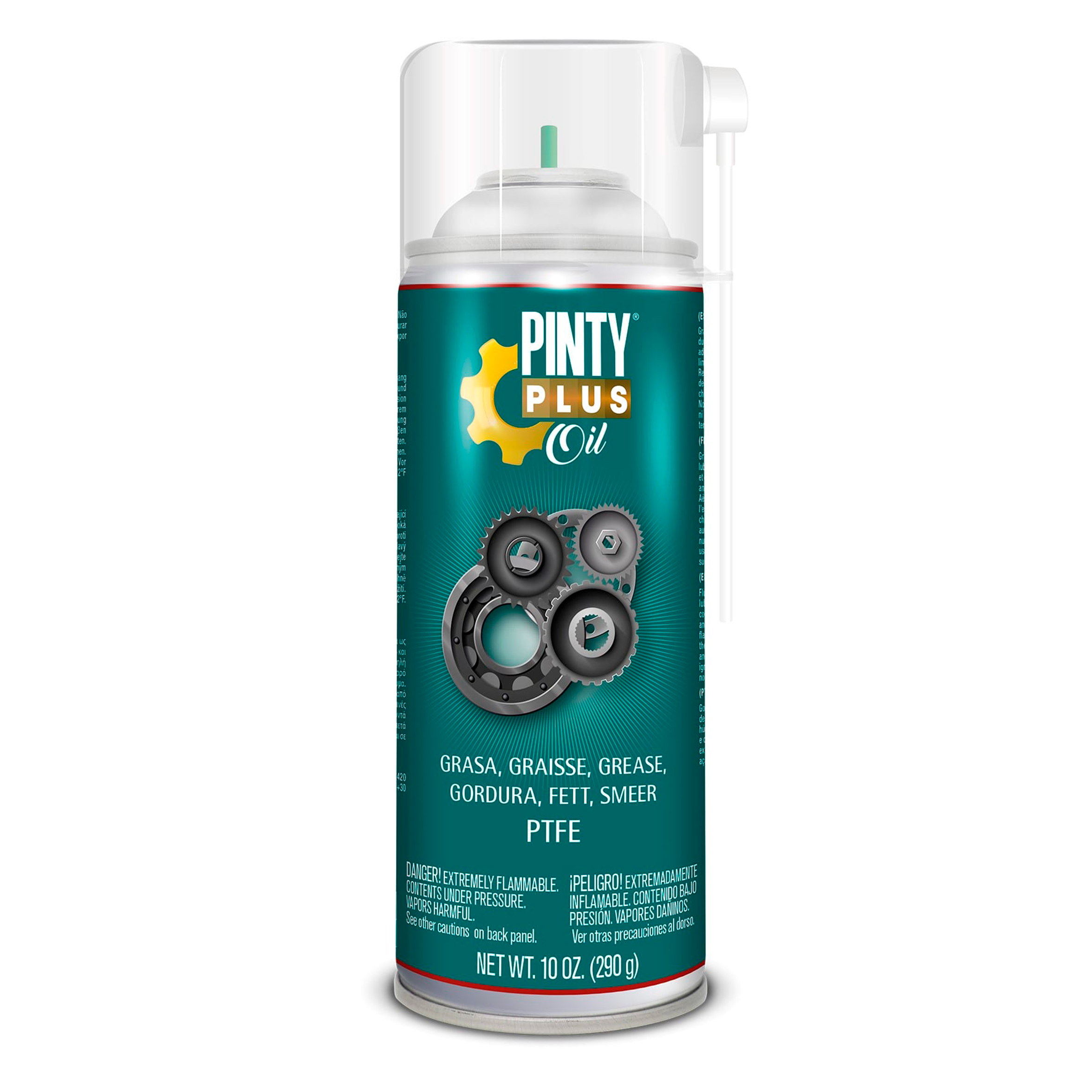 Grasa en spray PTFE Pintyplus Oil de larga duración en condiciones extremas de humedad y temperatura. Alta adherencia y estanqueidad. Nuestra grasa en spray PTFE Pintyplus ofrece un engrase de larga duración bajo condiciones extremas de humedad y temperatura. Posee una alta adherencia y estanqueidad. Elevado poder anticorrosivo y antidesgaste. Temperatura de trabajo entre –35 y 170ºC. Producto limpio y de baja toxicidad.