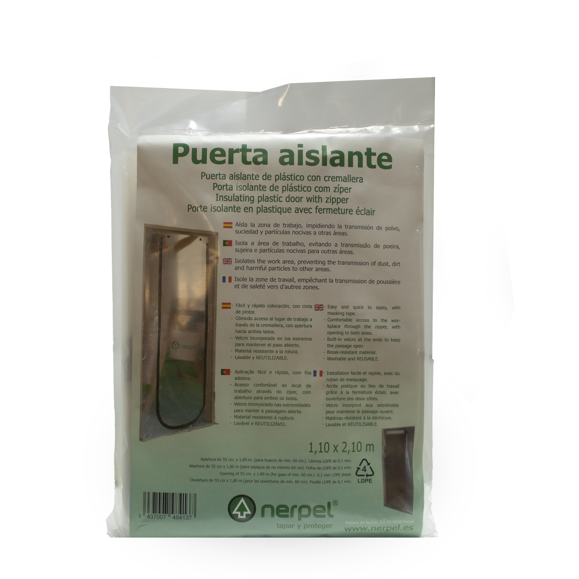 • Mantiene la puerta limpia: Previene eficazmente la acumulación de polvo, pintura y suciedad, simplificando la limpieza final de la obra.